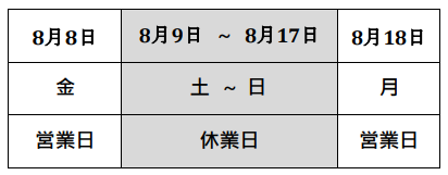 ※8月8日(金)は通常営業いたします。